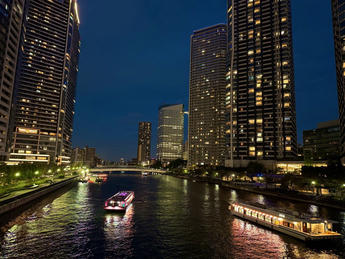 この右手に見える、木々に囲まれた別荘を彷彿とさせるエントランスを持ったイケてるタワマンなんてとこですか?ドトールでしたっけ。しかも運河と屋形船を眺めながら歩く川沿いの道に生えてるの、桜じゃん。 x.com/kakijkaki/stat…